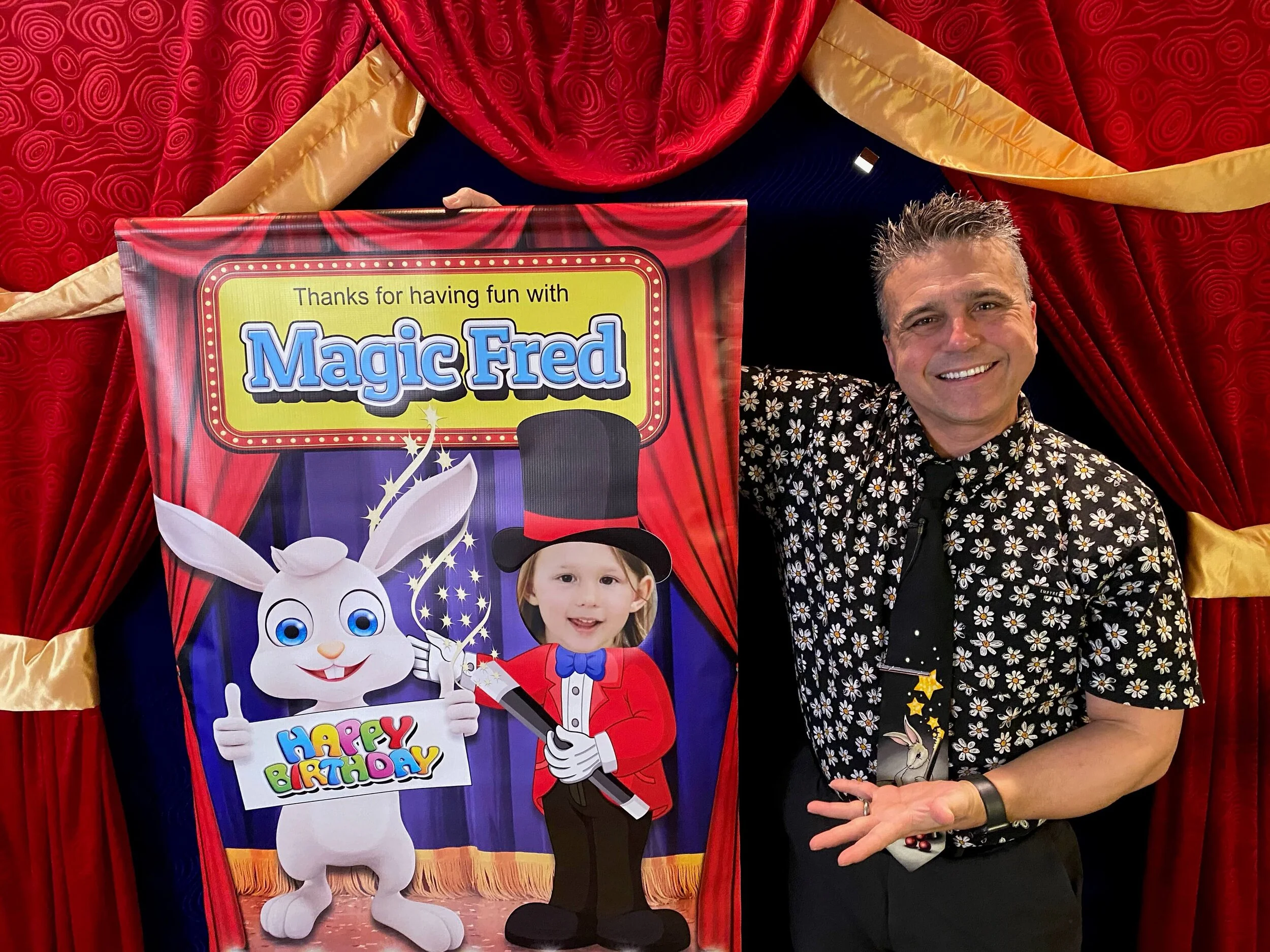 30 minute - Magic show ending with the birthday kid magician banner appearing.